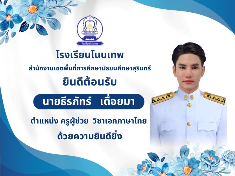 ผู้บริหาร คณะครูบุคลากร และนักเรียนโรงเรียนโนนเทพ ยินดีต้อนรับครูผู้ช่วย วิชาเอกภาษาไทย