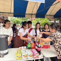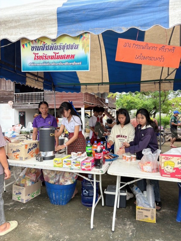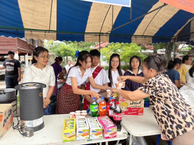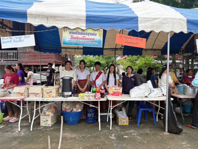 วันอาทิตย์ที่ 7 กันยายน 2568 โรงเรียนโนนเทพ ร่วมถวายปัจจัยและร่วมทำบุญโรงทานกาแฟ โอวัลติน ขนม น้ำ เนื่องในงานลงอุโบสถวัดเทพรัตนาราม บ้านหนองเทพ