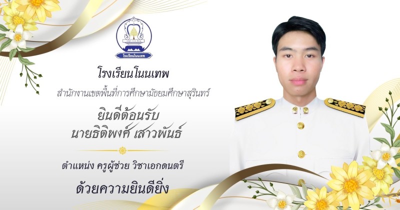 โรงเรียนโนนเทพ ยินดีต้อนรับคุณครูธิติพงศ์ เสาวพันธ์ ตำแหน่งครูผู้ช่วย วิชาเอกดนตรี ด้วยความยินดียิ่ง