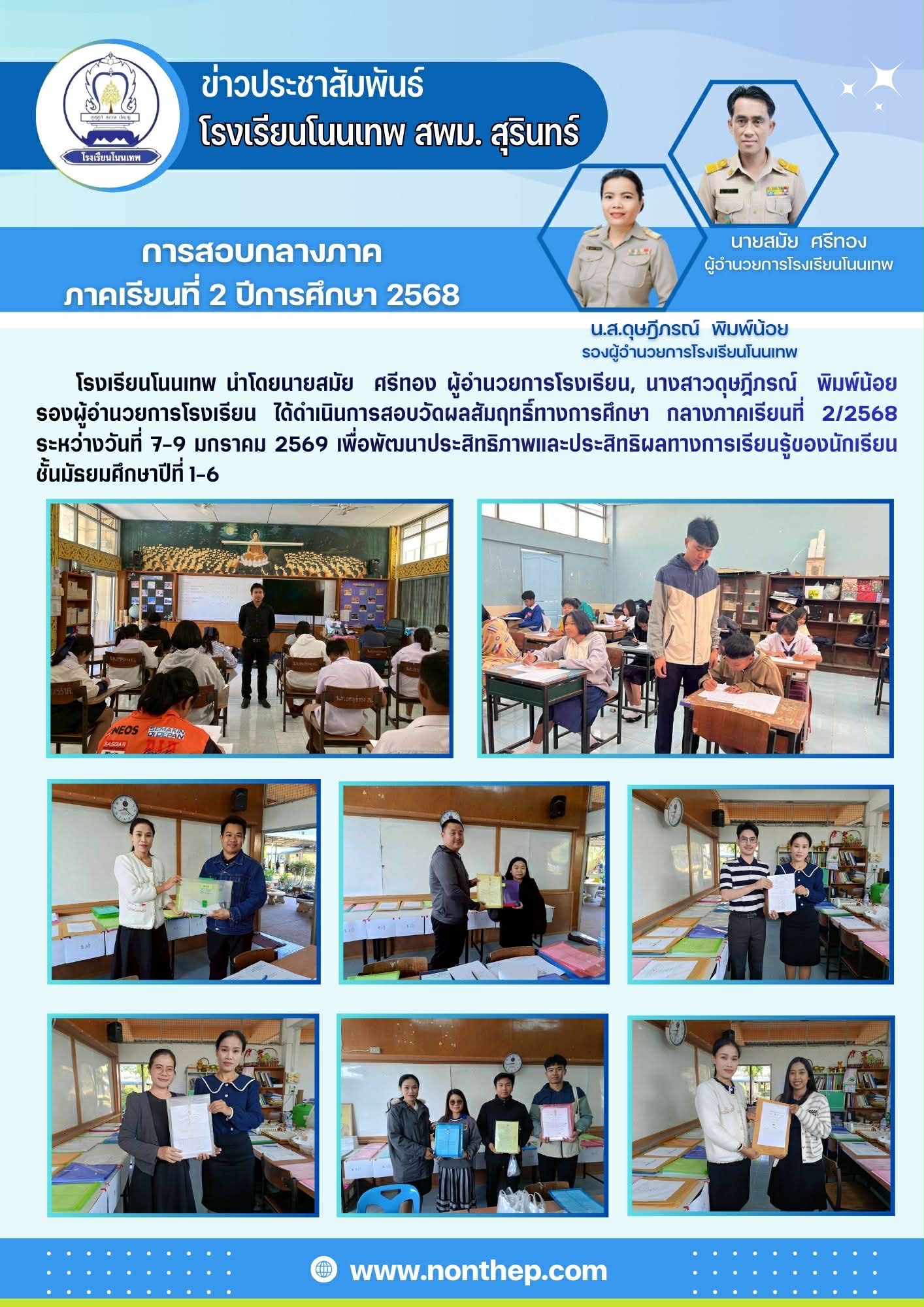นักเรียนโรงเรียนโนนเทพ สอบวัดผลสัมฤทธิ์ทางการศึกษา กลางภาคเรียนที่ 2/2568 ระหว่างวันที่ 7-9 มกราคม 2569 เพื่อพัฒนาประสิทธิภาพและประสิทธิผลทางการเรียนรู้ของนักเรียนชั้นมัธยมศึกษาปีที่ 1-6
