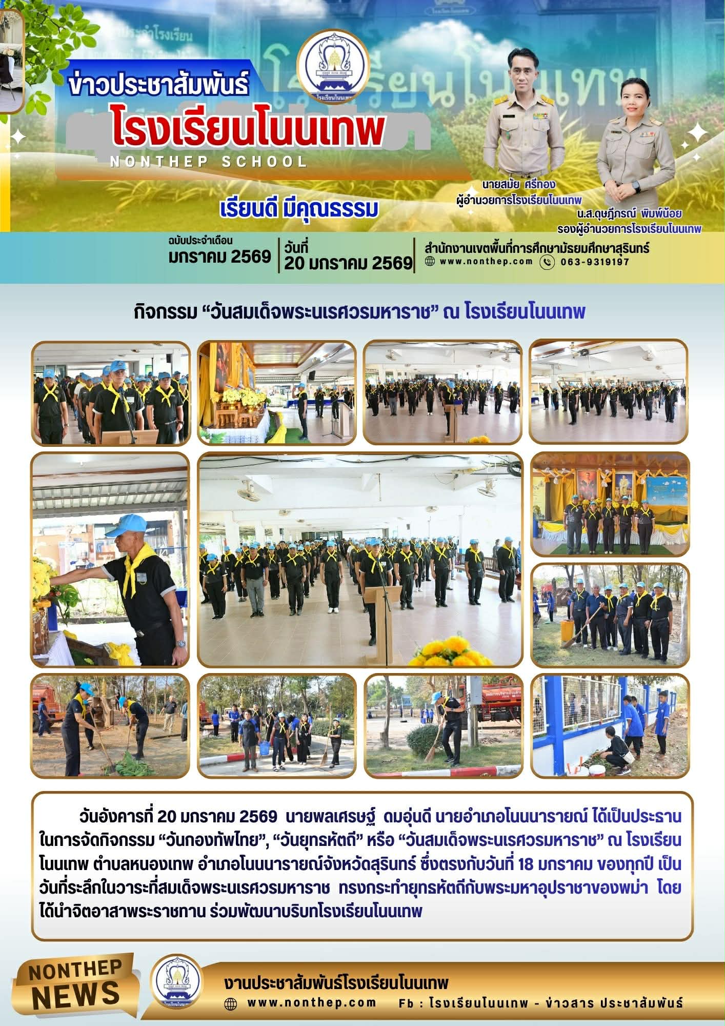วันอังคารที่ 20 มกราคม 2569 นายพลเศรษฐ์ ดมอุ่นดี นายอำเภอโนนนารายณ์ ได้เป็นประธานในการจัดกิจกรรม “วันกองทัพไทย”, “วันยุทธหัตถี” หรือ “วันสมเด็จพระนเรศวรมหาราช” ณ โรงเรียนโนนเทพ